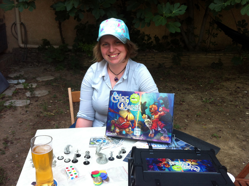 La semaine dernière, nous avions rdv au Shrubbery de Villeurbanne avec Laura, de Game On Tabletop pour lui remettre quelques éléments Color Quest (dont les premiers tirages du Koloss) en vue de la Gen Con qui se déroulera cette semaine aux Etats-Unis. Un grand merci à elle pour son soutien.