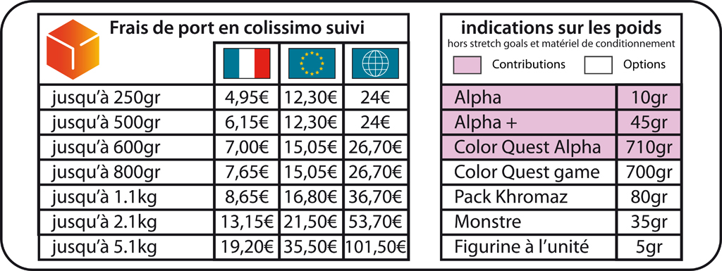 - 99€ pour les deux figurines "Alpha" + le jeu Color Quest + les stretch goals. Soi plus de 20 figurines.