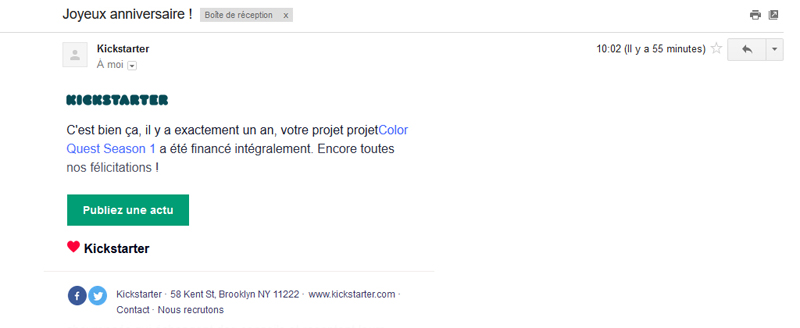 Un an tout juste depuis le financement de la saison 1 de Color Quest !