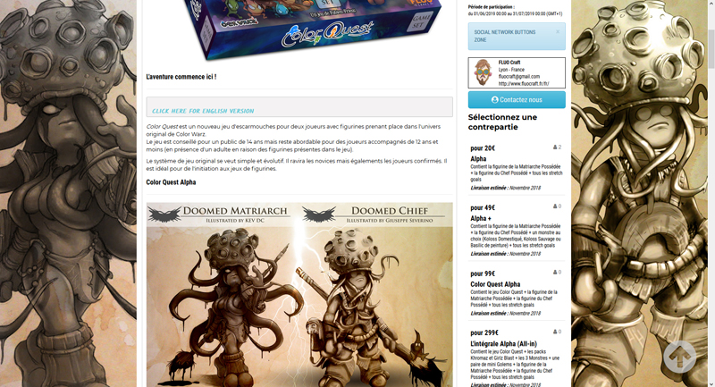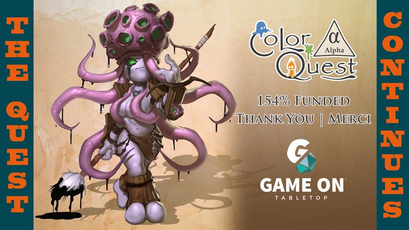 Comme vous le savez, la campagne Color Quest Alpha a été financée à hauteur de 154% le jeudi 07 juin 2018 sur la plateforme de financement participatif Game On Tabletop avec le concours de 60 contributeurs.