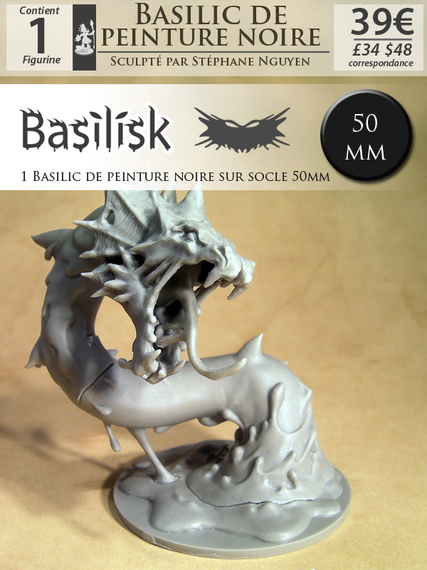 Le Basilic de peinture Noire (figurine Color Quest n°28) sculpté par Stéphane Nguyen (socle 50mm)