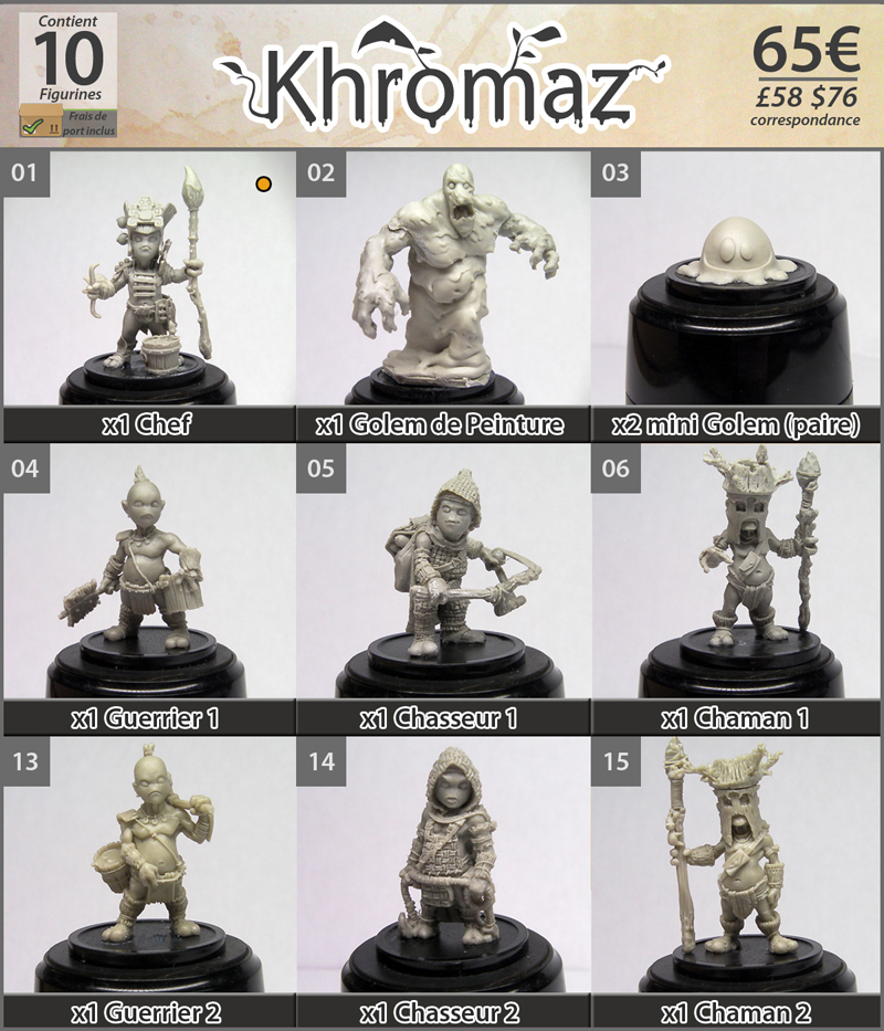 Note : les cercles oranges sur les vignettes des figurines indiquent des kit multipart - Khromaz : +10 figurines - ajoutez 65€ (£58 / $76) au montant initial de votre contribution