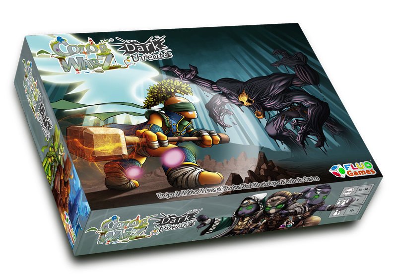 Color Warz - Dark Threat, un prototype de jeu stratégique pour 2 joueurs par Fabien Friess et Nicolas Tézé (FLUO Games 2013). Illustration de couverture : Kev DC.