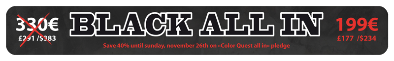 Black all in (intégrale jeu + gamme complète de figurines) à 199€ au lieu de 330€ (économisez 40%)- Black Collector (all in + Paint Brawl + pack de figurines Paint Brawl) à 400€ au lieu de 500€ (économisez 20%)